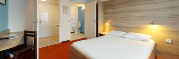 Our rooms have been designed to offer you comfort and simplicity in a peaceful and functional setting. Each room is air-conditioned and features a well-organized space with quality bedding, a luggage rack, a private bathroom with a hairdryer, a flat-screen TV, a desk, and free Wi-Fi access.